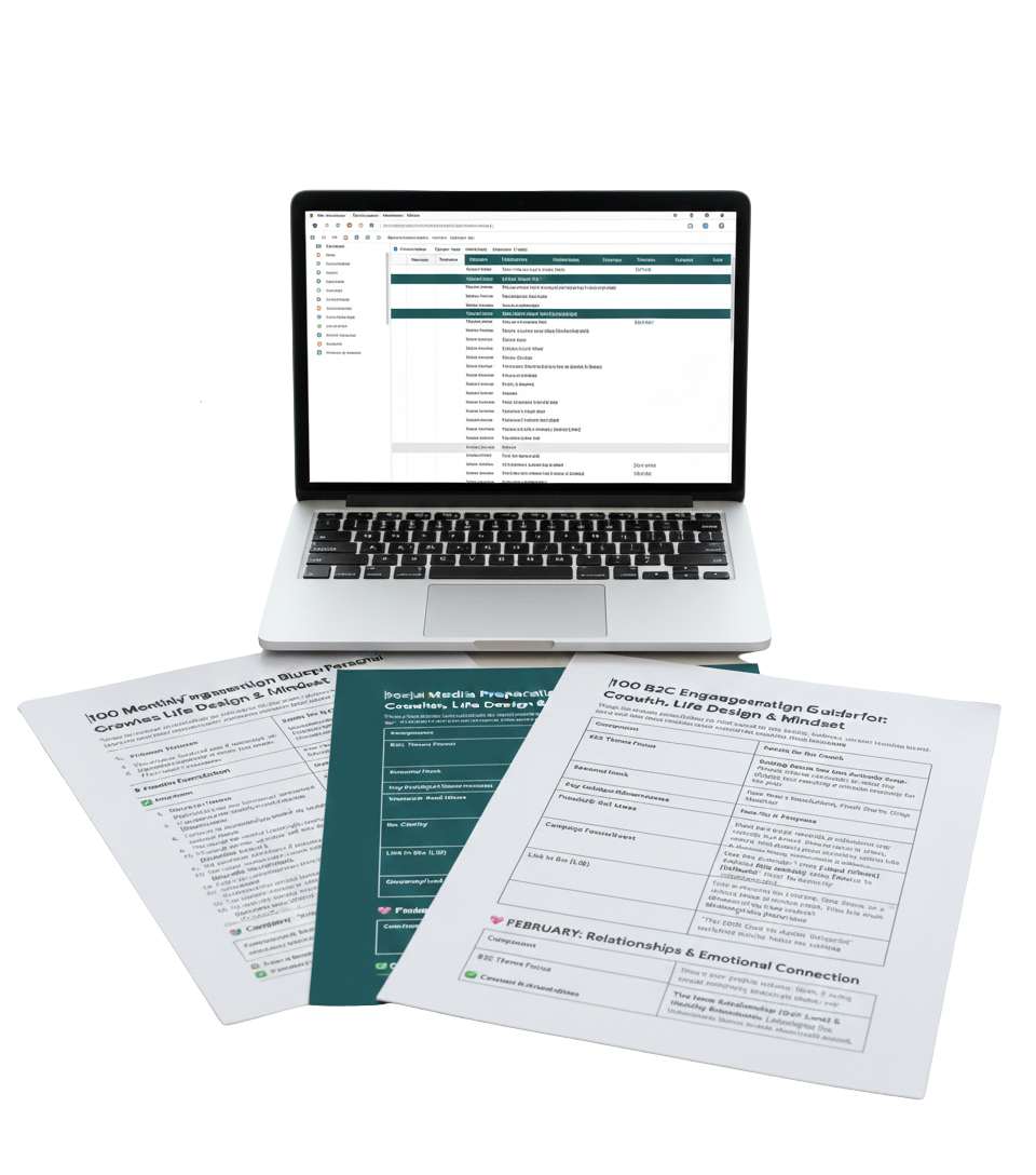 Instead of waking up wondering what to promote or how to stay relevant, you will have a yearly flow of themes designed to increase visibility, build trust, and move your audience closer to working with you.