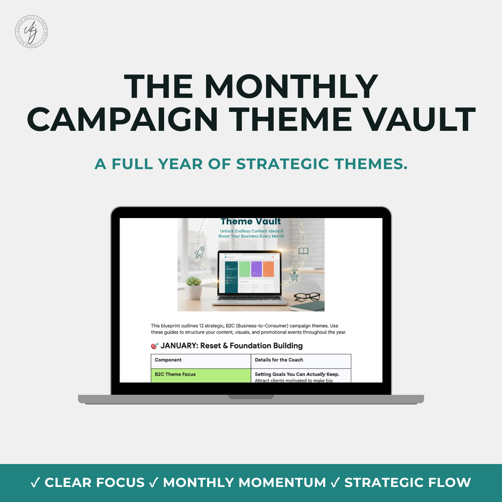 Monthly Campaign Theme Vault: Twelve high converting themes that guide your marketing each month. Value: $197