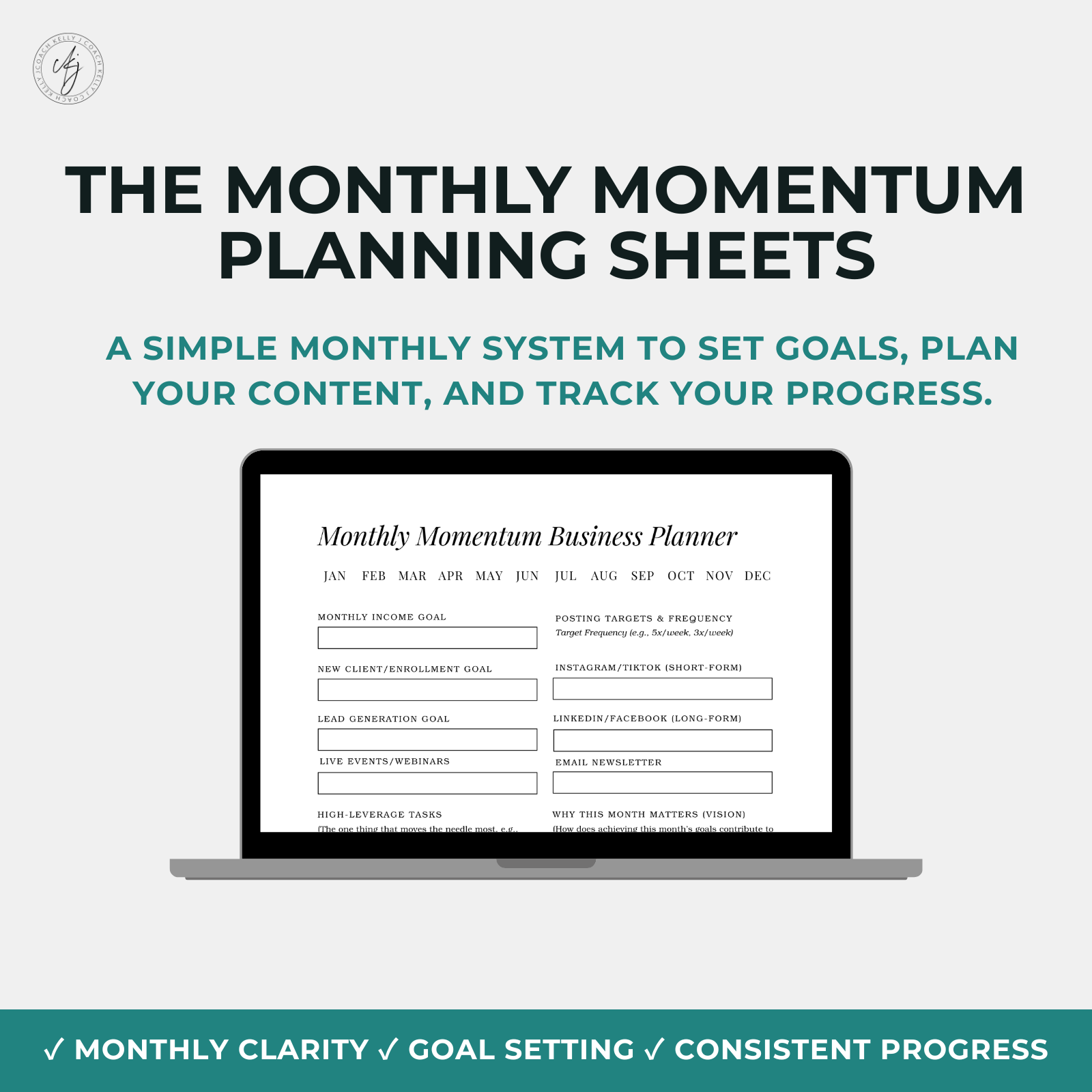 The Monthly Momentum Planning Sheets: Monthly planning made simple. Set your goals, map your tasks, track your progress. Value: $147