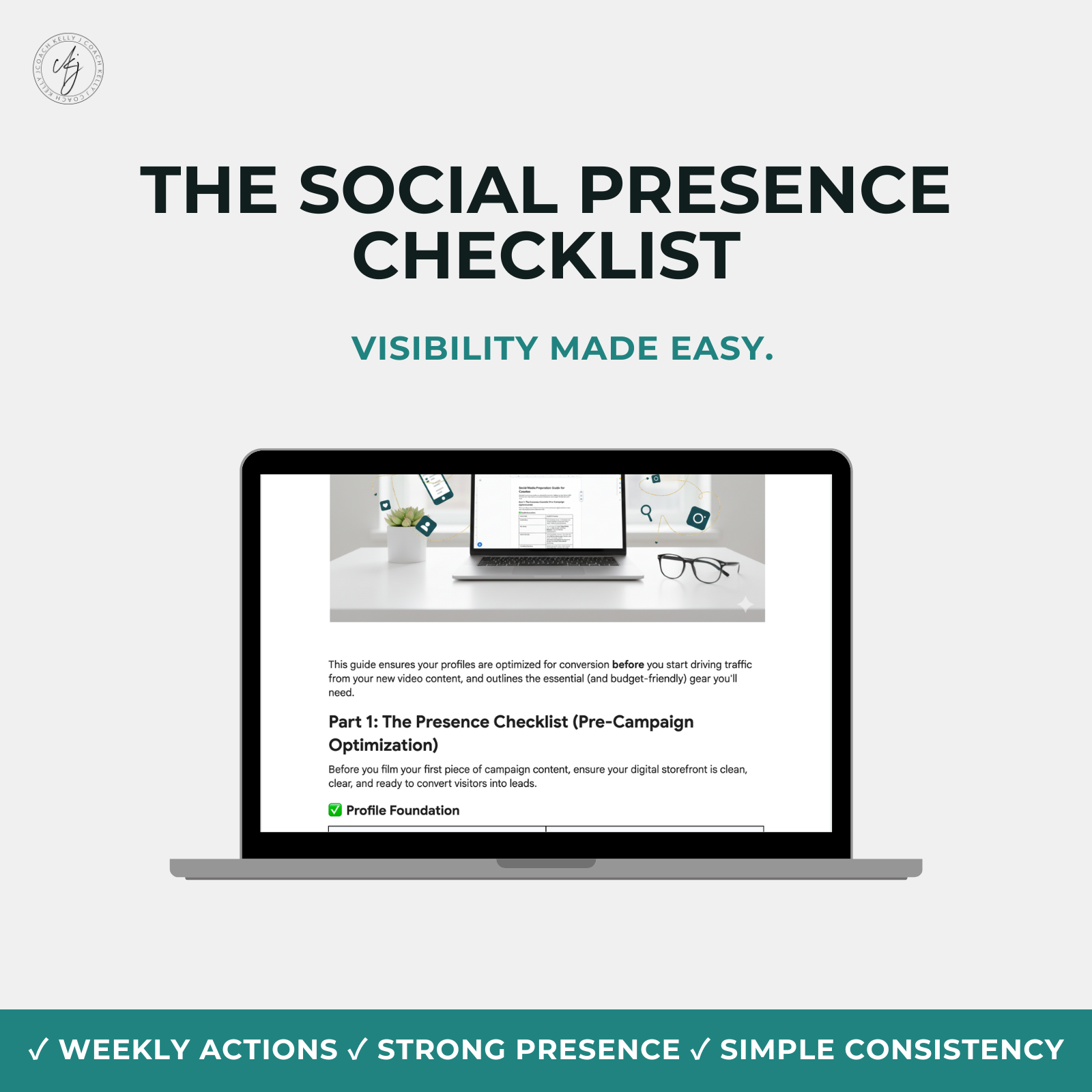 The Social Presence Checklist: A repeatable checklist to stay visible and relevant on all platforms. Value: $97