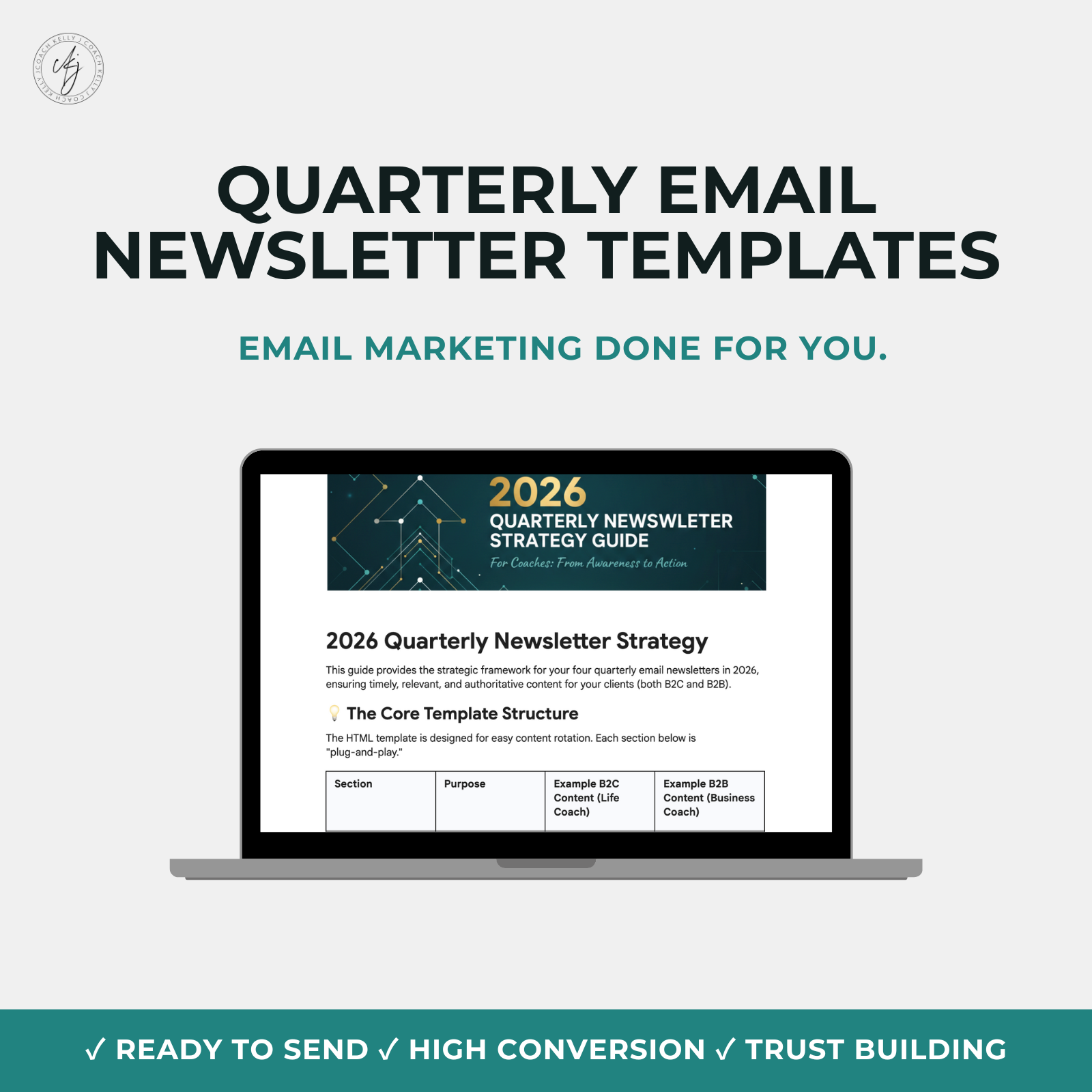 Quarterly Email Newsletter Templates: Twelve plug and play newsletters that build trust with your list and convert consistently. Value: $297